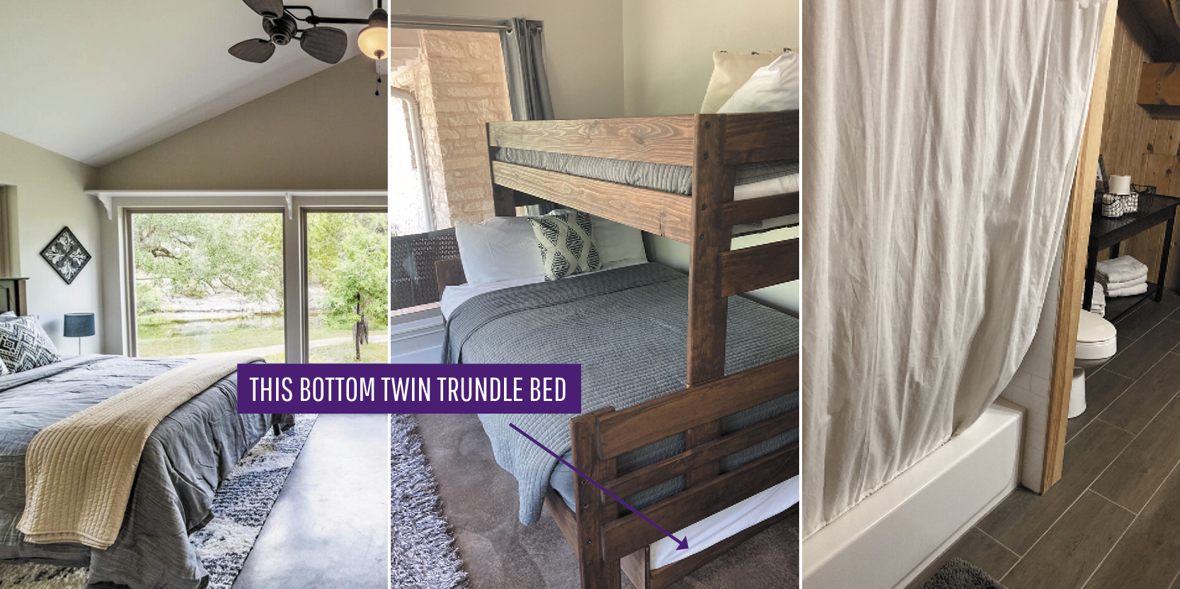 Bottom Twin Trundle Bed with Full Bed and Twin Bunk above (bed is not pulled out in photo)